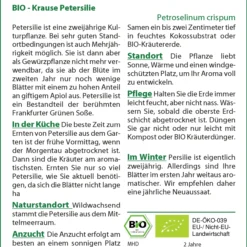 Keimtemperatur 18 – 22 °C, Keimdauer 10 – 12 Tage