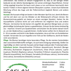 Blumenwiesen sind ein wichtiges Habitat für Insekten, Vögel und Kleinsäuger und spielen beim Erhalt der natürlichen Artenvielfalt eine wichtige Rolle. Die Blumenwiese von ReNatura enthält verschiedene Gräser und typische Blumen einer Blumenwiese. Die Blüten dienen den Insekten als Nahrungsquelle und werden gerne angeflogen. Das Nektar- und Pollenangebot wird von verschiedensten Insekten wie Hummeln und Faltern angenommen. Singvögel, wie z. B. das Rotkehlchen, finden hier Deckung und durch das Angebot an Samen und Insekten eine vielfältige Nahrungsquelle. Aber auch Kleinsäuger, wie die Feldmaus, finden auf der Blumenwiese einen geeigneten Lebensraum mit ansprechendem Nahrungsangebot. Optisch bietet die Blumenwiese ein sehr ansprechendes Bild und gerade in den Monaten der Blüte gibt es immer etwas zu entdecken. Unter anderem sind folgende Arten enthalten: