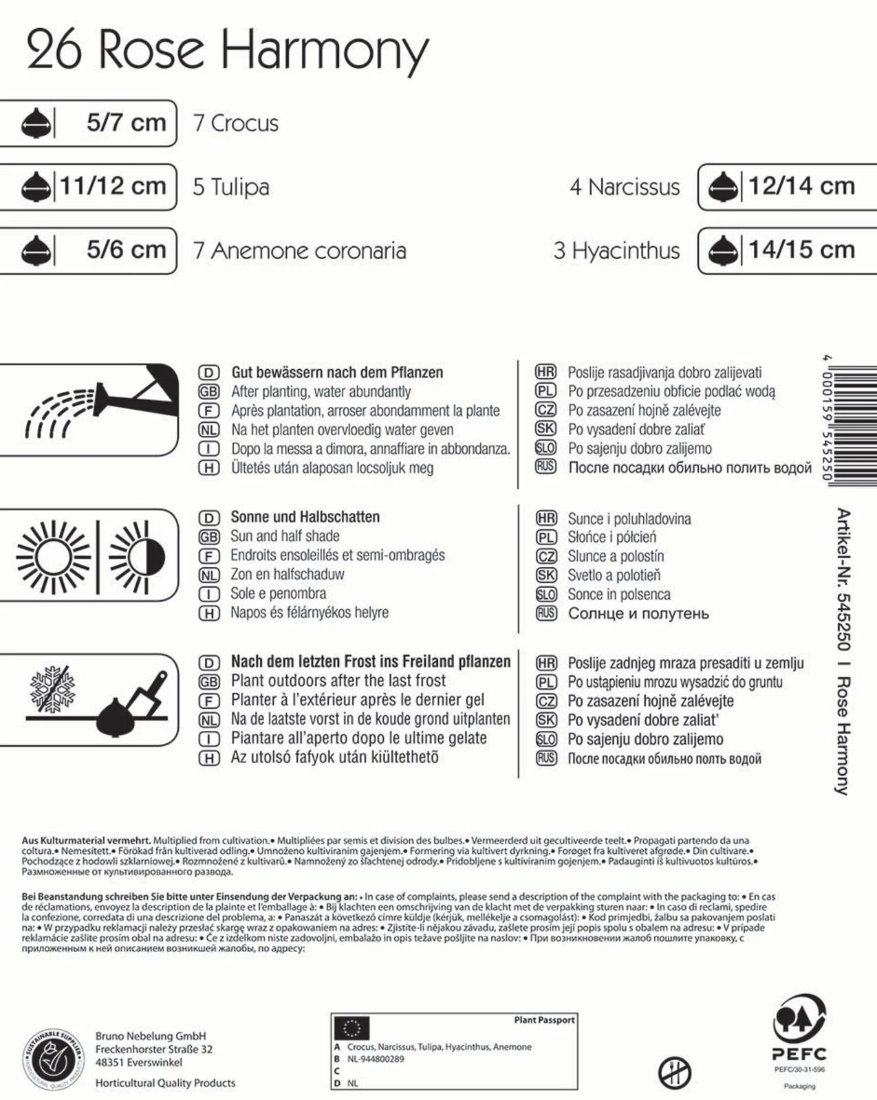 Rosa liegt im Trend! Mit dem Blumenzwiebel-Mix Colour Symphony „Rose Harmony“ von Kiepenkerl können ganze Blumenbeete, Hochbeete oder Pflanzgefäße in ein Meer aus rosafarbenen Blüten verwandelt werden. Enthalten sind in dieser Prachtmischung Krokusse, Narzissen, Tulpen und Hyazinthen, die perfekt miteinander harmonieren. Die Pflanzen erreichen Wuchshöhen zwischen 10 und 45 cm und blühen im Zeitraum von Februar bis Mai zu unterschiedlichen Zeitpunkten. Daraus ergibt sich ein langanhaltender, abwechslungsreicher Blütenflor. Besonders wohl fühlen sich die duftenden und für die Verwilderung gut geeigneten Blumen an sonnigen und halbschattigen Plätzen.