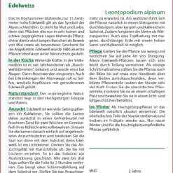 Das im Hochsommer blühende, nur 15 Zentimeter hohe Edelweiß gilt als das Symbol der Alpen schlechthin. Es steht für Mut und Liebe, denn das Pflücken des nur in sehr hohen und schwer zugänglichen Lagen blühende Pflänzchens diente einst jungen Burschen als Beweis von Mut sowie als besonderes Geschenk für die Angebetete. Edelweiß wurde 1886 als erste Pflanze überhaupt unter Naturschutz gestellt. Wirkende Kräfte: In der Volksmedizin ist es seit Jahrhunderten als „Bauchwehblümelein“ bekannt und wurde einst bei Magen- Darm-Beschwerden eingesetzt. Auch bei Erkrankungen der Atemwege soll es helfen, weshalb Kopfkissen mit getrocknetem Edelweiß gefüllt werden. Da Edelweiß auch in der Himalayaregion vorkommt, hat die Pflanze auch in der traditionellen chinesischen Medizin ihren festen Platz. Der ursprüngliche Naturstandort liegt in den Hochgebirgen Europas und Asiens.