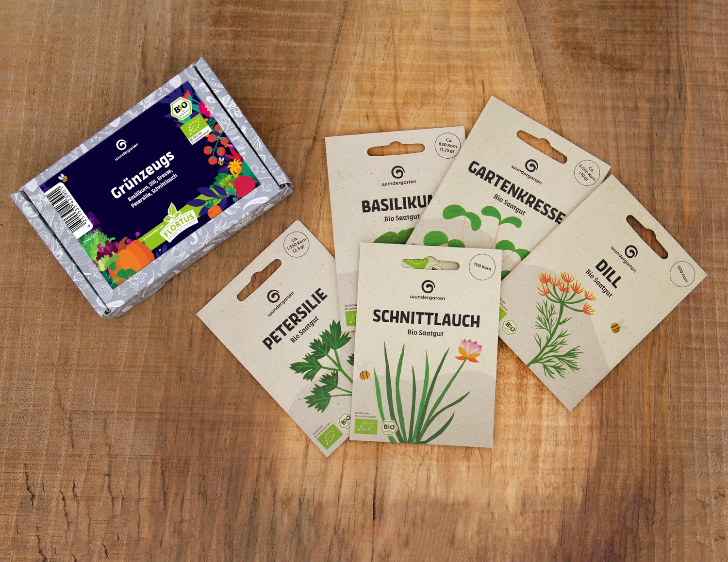 Das Grünzeugs Set bringt fünf tolle Kräuter mit, die in der Küche immer benötigt werden. Schnittlauch und Petersilie, Dill, Kresse und Basilikum lassen sich in vielen Salaten und gekochten Gerichten verwenden. Aber auch frisch aufs Butterbrot oder auf rohes Gemüse sind die Kräuter ein Genuss. Alle fünf Kräuter können Sie im Garten oder im Pflanztopf auf Terrasse und Balkon ziehen. Sogar auf dem Küchenfenster wachsen die Kräuter und sind so den ganzen Winter über verfügbar. Die Kräuter aus dem Grünzeugs Set lassen sich leicht anziehen.
