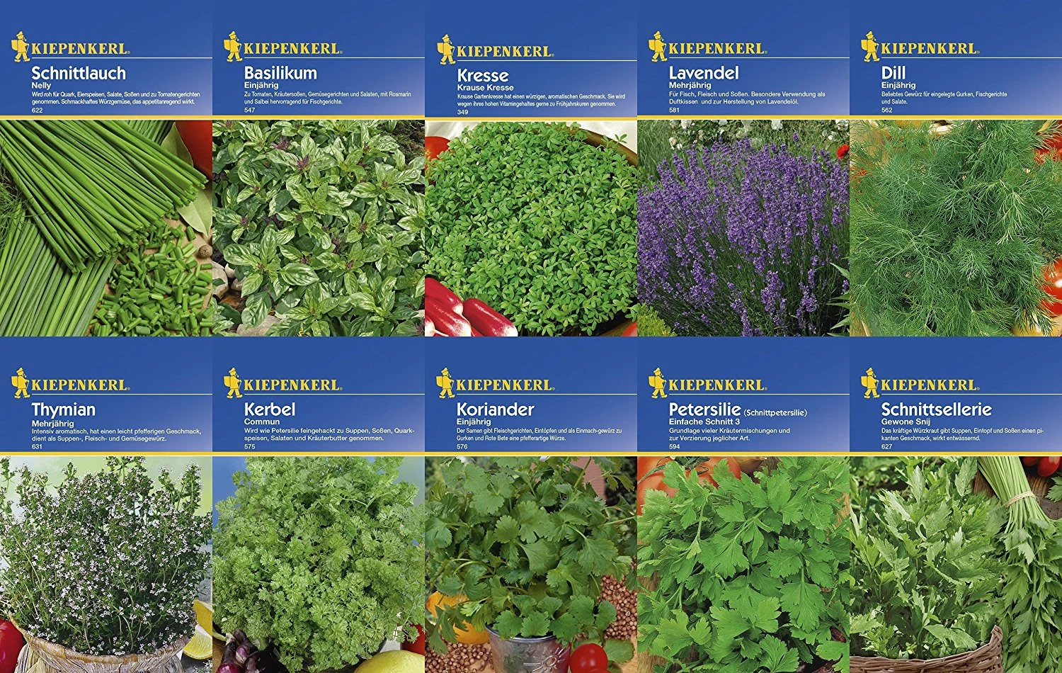 Samen-Set mit 10 verschiedenen Kräutersorten von Kiepenkerl. Perfekt um Ihren Kräutergarten aufzurüsten!