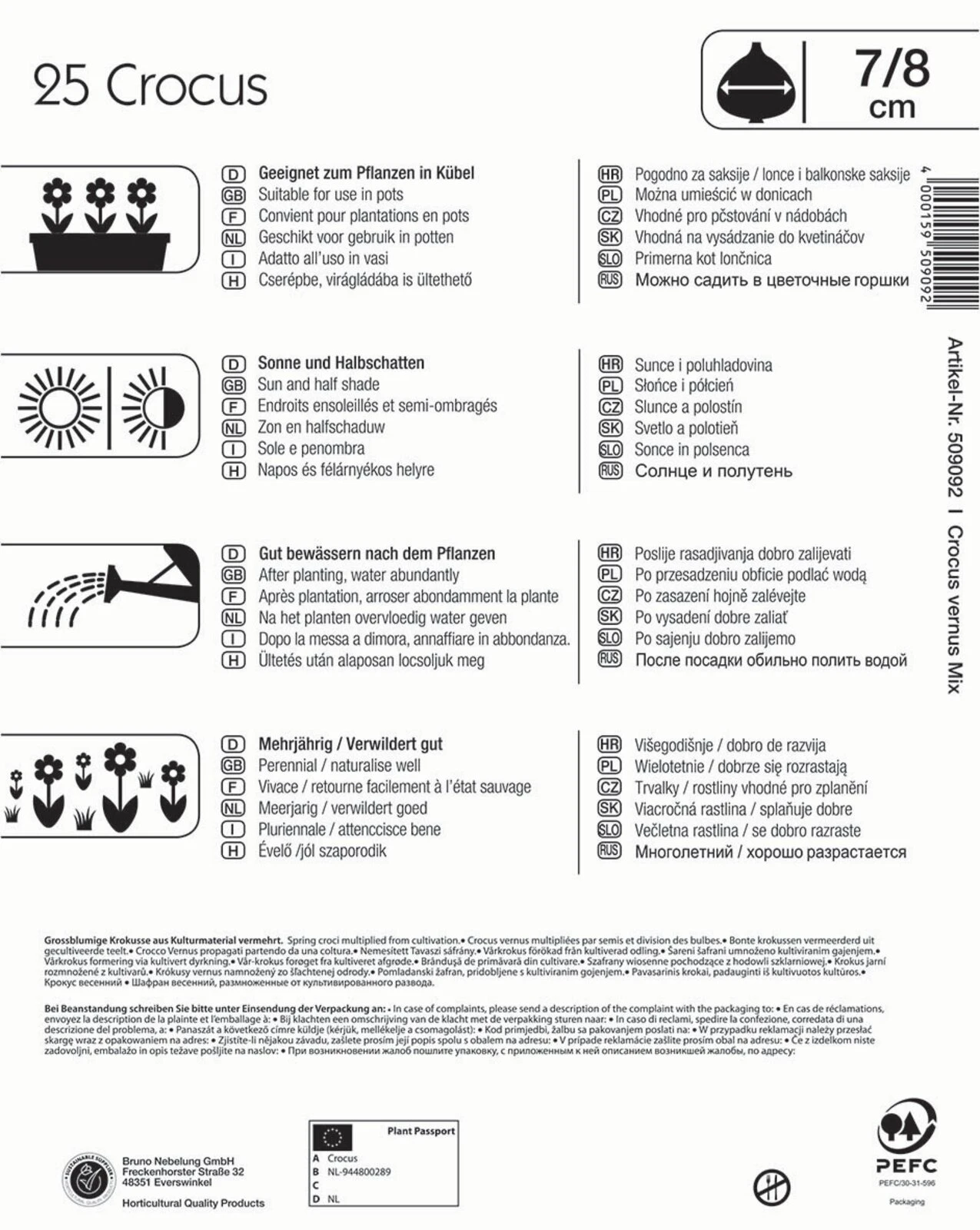 Mit dem Mega-Pack „Gartenkrokusmischung“ wachsen großblumige Krokusse im Garten. Sie blühen in einer farblich aufeinander abgestimmten Mischung aus Weiß, Lila und Gelb sowie Fliedertönen, die eine interessante Musterung haben. Dadurch entsteht ein harmonisches Blumenbeet. Die Blumen in diesem Mega-Pack verwildern gut und erreichen eine Wuchshöhe von 10 cm. Sie blühen von März bis April und sind dann eine ideale Nahrungsquelle für Nützlinge wie Bienen oder Hummeln.