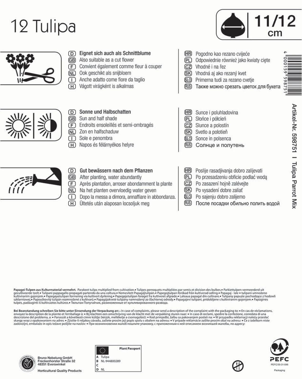 Mit dem Mega-Pack „Papagei Tulpe Papageien Mischung“ kommt jeder Tulpenliebhaber voll und ganz auf seine Kosten! Insgesamt sind 12 Blumenzwiebeln enthalten, aus denen im Frühjahr herrliche Papageien-Tulpen in den verschiedensten Farben entstehen. Charakteristisch für die Blüten sind die schwungvoll auslaufenden bis gefransten Blütenränder. Mit einer Wuchshöhe von ca. 50 cm eignet sich dieser Tulpen-Mix auch hervorragend für den Schnitt. Damit Wachstum und Blütenbildung reibungslos verlaufen, sollten die Zwiebeln an einem sonnigen oder halbschattigen Standort gesteckt und direkt danach gut gewässert werden.