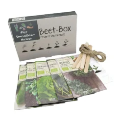 Acht alte Gemüsesorten für die moderne Küche in Keimschutzpackungen. Auch im Mittelalter wusste man zu schlemmen. Feinste Gemüsesorten mit besonderem Geschmack gab es damals. In der Saatgutbox mit mittelalterlichem Gemüse finden Sie typische Gemüsearten des Mittelalters, die leider lange in Vergessenheit geraten waren. Daraus lassen sich zahlreiche leckere Gerichte zaubern. Im Sinne der Artenvielfalt sollten Sie die Gemüsesorten ruhig wieder im Garten anbauen. In der Holzbox sind die Samen ideal aufgehoben. Auch später noch können Sie die Box für die Lagerung Ihres Saatgutes verwenden.