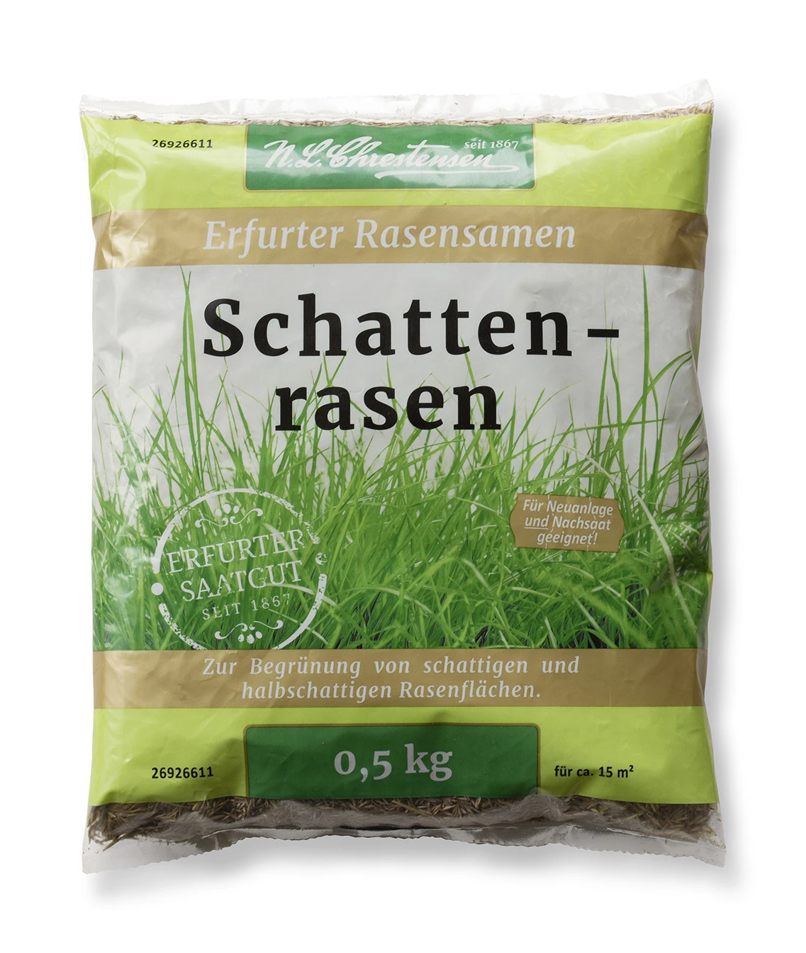 Besondere Rasenmischung zur Begrünung von schattigen und halbschattigen Rasenflächen. Eine Mischung, die durch ihre spezielle Zusammensetzung optimal auf die schwierigen Verhältnisse in Schatten- und Halbschattenbereiche abgestimmt ist. Durch komplexe Auswahl verschiedener Komponenten erreicht der Rasen eine mittlere bis hohe Belastbarkeit. Aussaatmenge 30 g / m².
